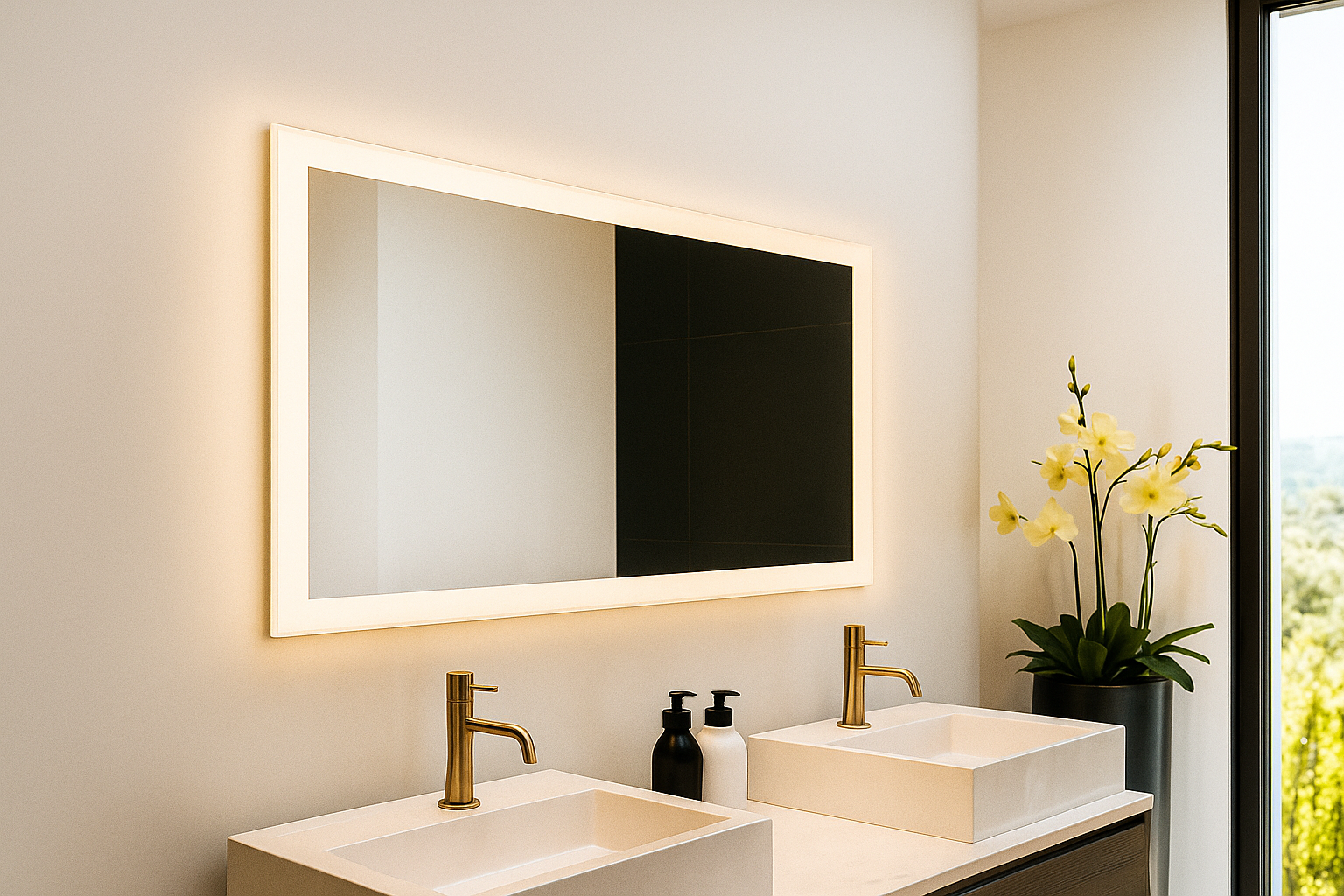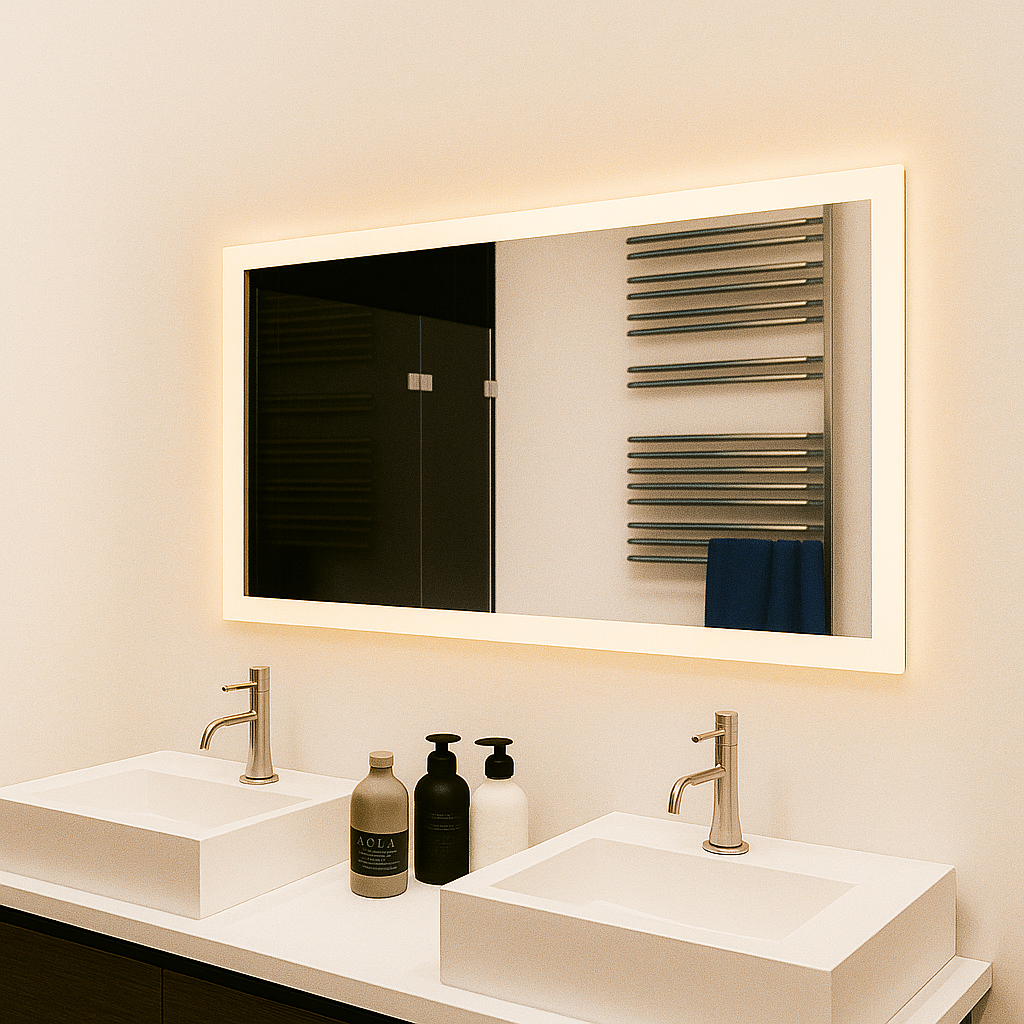 Auch optisch ist der Badspiegel mit LED Beleuchtung Rundherum ein echter Hingucker. Die LED-Beleuchtung ist nicht nur energieeffizient, sondern sorgt auch für ein angenehmes Licht, das Ihren Badezimmern ein modernes Ambiente verleiht.