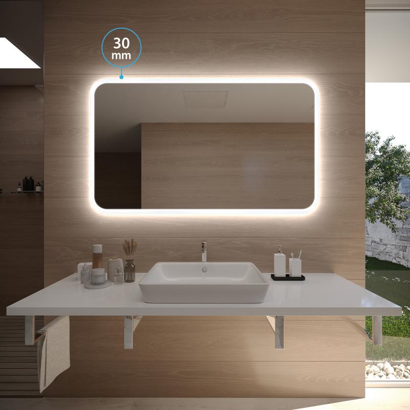 Auch optisch ist der Badspiegel mit LED Beleuchtung Rundherum ein echter Hingucker. Die LED-Beleuchtung ist nicht nur energieeffizient, sondern sorgt auch für ein angenehmes Licht, das Ihren Badezimmern ein modernes Ambiente verleiht.