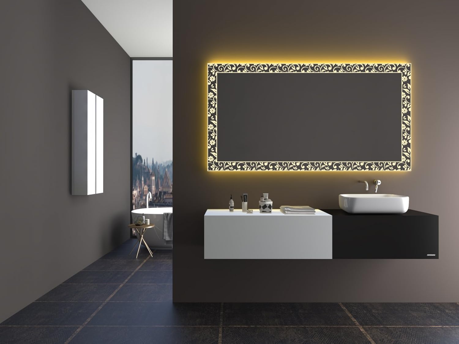 Der Badspiegel Laser Design ist mit einer speziellen Lasertechnik graviert. Diese Technik ermöglicht eine präzise und detailreiche Umsetzung der Wünsche. Die Lasergravur ist sehr beständig und kann nicht abgekratzt werden. Durch die hohe Qualität der Acrylglasplatten wird ein langlebiger und robustes Produkt gewährleistet. Der Badspiegel Laser Design wird mit einer LED Beleuchtung ausgestattet, die ein angenehmes Licht erzeugt. Die LED Leuchten sind energiesparend und langlebig. Sie sind dimmbar und können in verschiedenen Farben eingestellt werden. Der Badspiegel Laser Design ist ein einzigartiges Produkt, das Ihrem Badezimmer eine individuelle Note verleiht. Er ist ein Blickfang, der Ihr Zuhause aufwertet. Mit einem solchen Spiegel schaffen Sie eine angenehme Atmosphäre und ein Gefühl von Luxus.