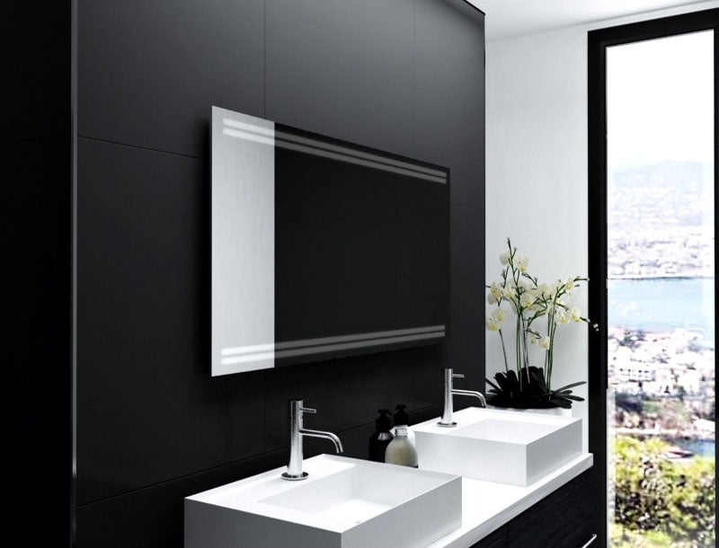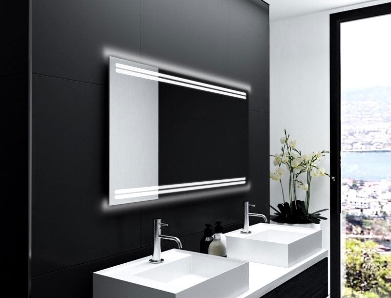 AAuch optisch ist der Badspiegel mit LED Beleuchtung oben und unten ein echter Hingucker. Die LED-Beleuchtung ist nicht nur energieeffizient, sondern sorgt auch für ein angenehmes Licht, das Ihren Badezimmern ein modernes Ambiente verleiht.