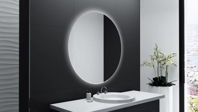 Der runde Badspiegel mit LED-Beleuchtung - Rida, verfügt über eine indirekt rundherum beleuchtete Beleuchtung und sorgt mit einer leistungsstarken High-End-LED-Beleuchtung, für eine angenehme Helligkeit in Ihren Badräumen.